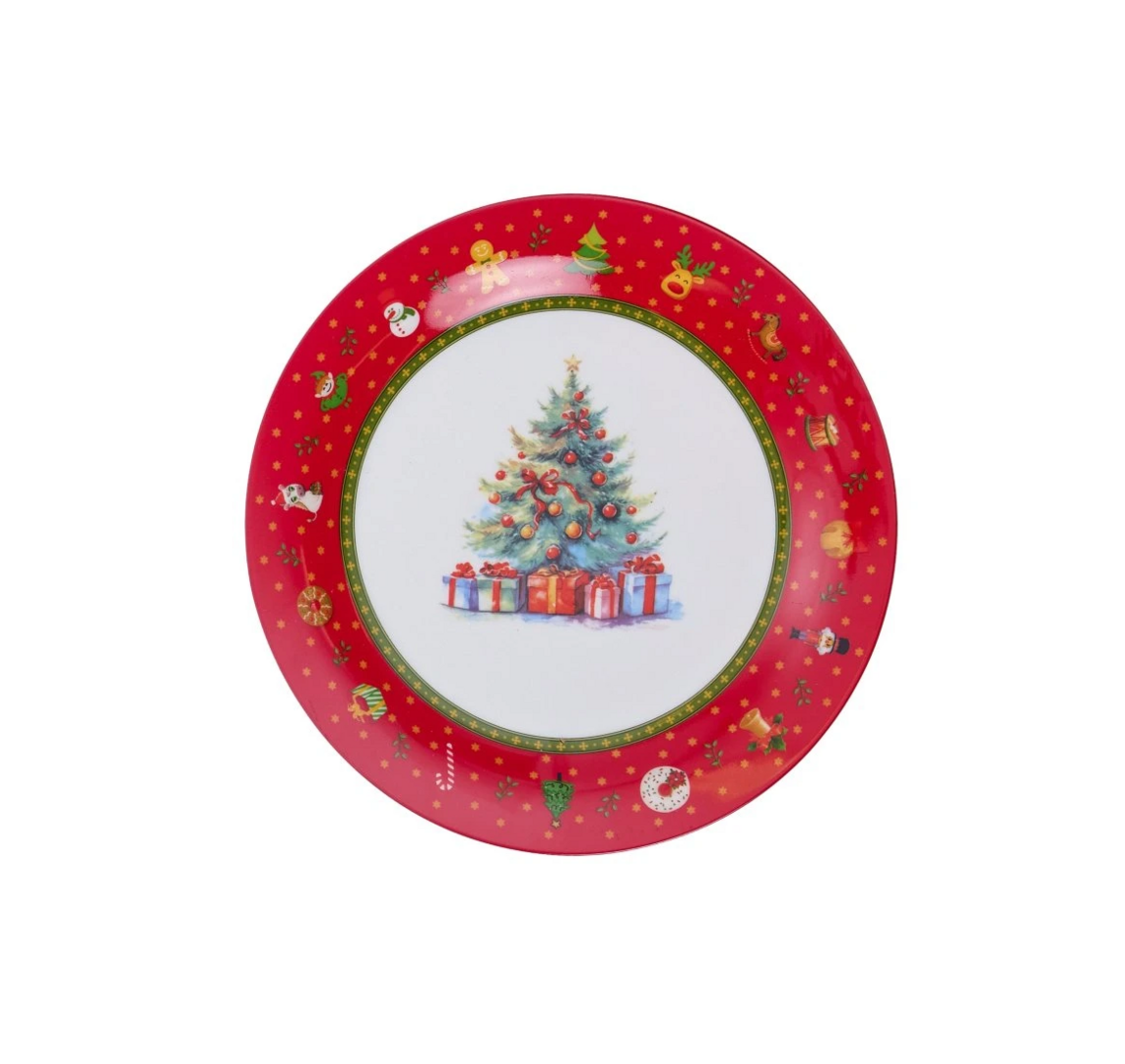 Set vianočných tanierov obsahuje plytký malý tanier, plytký veľký tanier a hlboký tanier. S každého typu tanierov po šesť kusov, spolu 18 kusov tanierov.